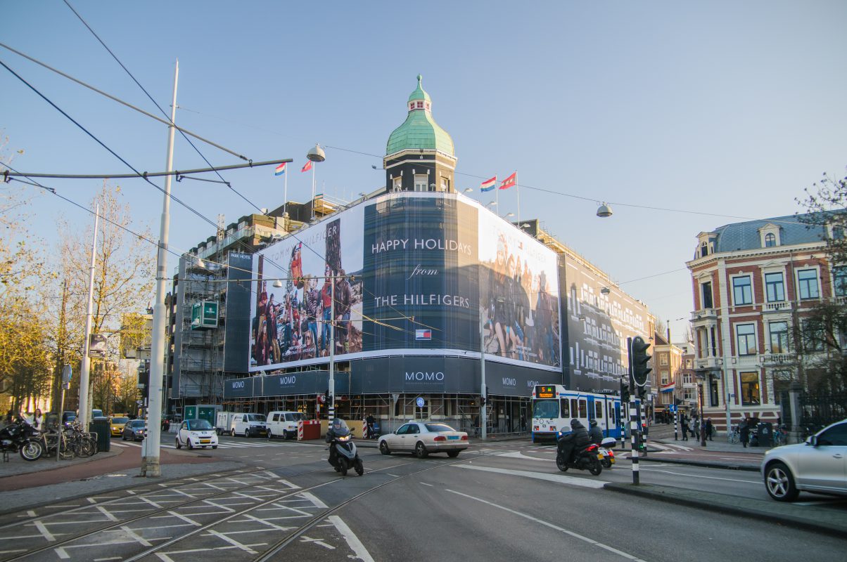 Grootschalig onderhoud met een zwaar belastbaar gevelsteiger klasse 4. Op diverse posities zijn overkluizingen gemaakt en integratie van doorlooptunnels in de steigerconstructie. Bovenop deze speciale randvoorwaarden is ook nog eens een mega reclamedoek geplaatst tegen de steigerconstructie, extra windbelasting op de steigerverankeringen.